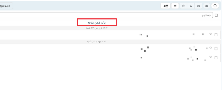 • قسمت حذف: در این قسمت امکان حذف پیش‌نویس پیام تعبیه شده است، که با انتخاب آن سؤالی جهت تأیید عمل حذف از کاربر پرسیده می‌شود.