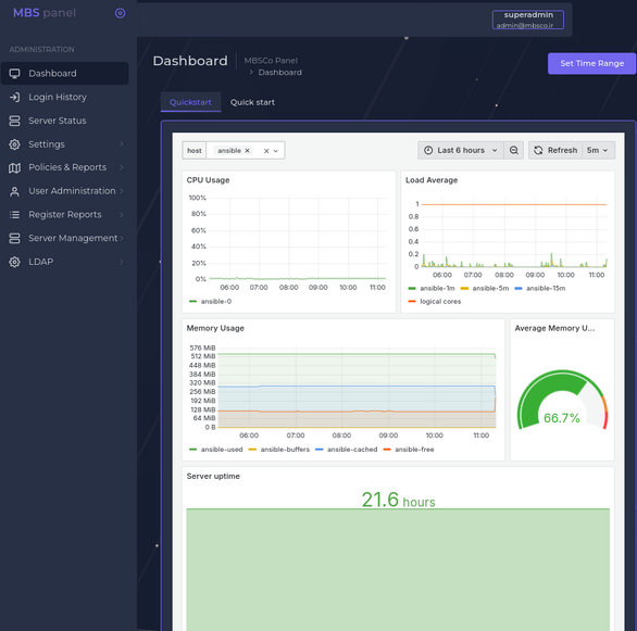 در این بخش، وضعیت سرورها و داشبوردهای هرکدام به صورت تفکیک شده نمایش داده می‌شود.
