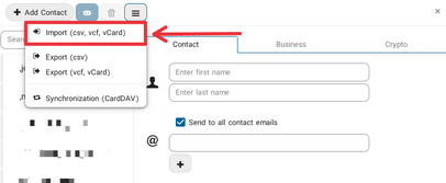 - انتخاب گزینه ( Import ( csv, vcf, vCard و انتخاب لیست دانلود شده