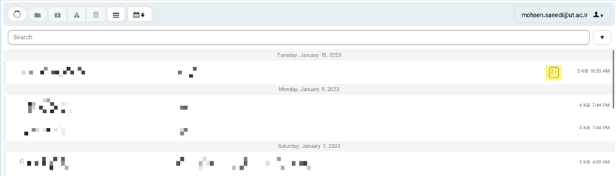 - گزینه Use threads در قسمت Message list : برای نمایش مکالمات صورت گرفته در یک پیام استفاده میشود. ( مطابق تصویر )برای مشاهده لیست مکالمات صورت گرفته کافی است بر روی عدد نوشته شده در مقابل پیام کلیک کنید.