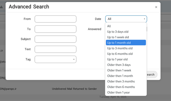 - گیرنده (به یا رونوشت): نوع فیلتر بر اساس گیرنده یا رونوشت.