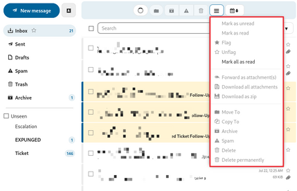 - گزینه Mark all as read: این گزینه تمام پیامهای موجود در پوشه جاری را به حالت خوانده تغییر میدهد.