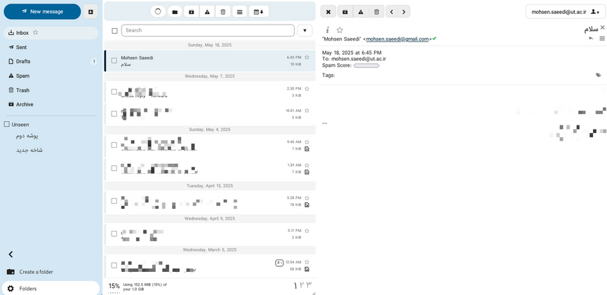 - پوشه Spam: پیامهایی که توسط سیستم به عنوان هرزنامه شناسایی شدهاند، به صورت خودکار به جای صندوق پستی به این پوشه وارد میشوند.